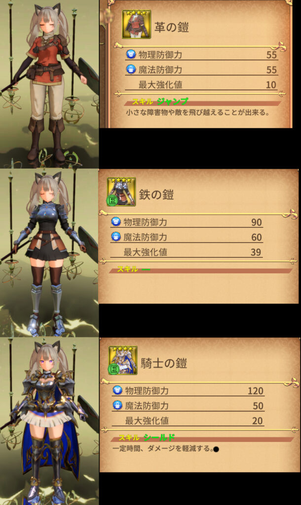 革の鎧 物理防御 55 魔法防御 55 スキル ジャンプ |