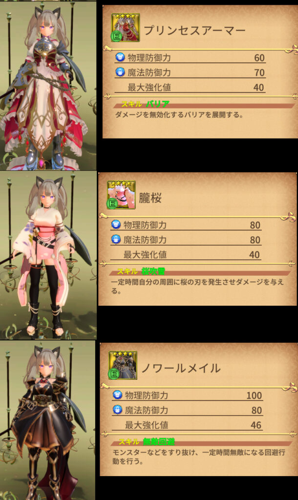 | ノワールメイル 物理防御 100 魔法防御 80 |