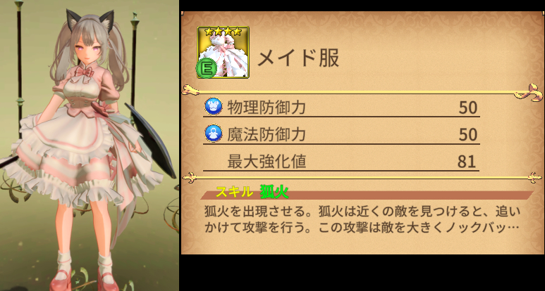 | メイド服(黒) 物理防御 50 魔法防御 50 |