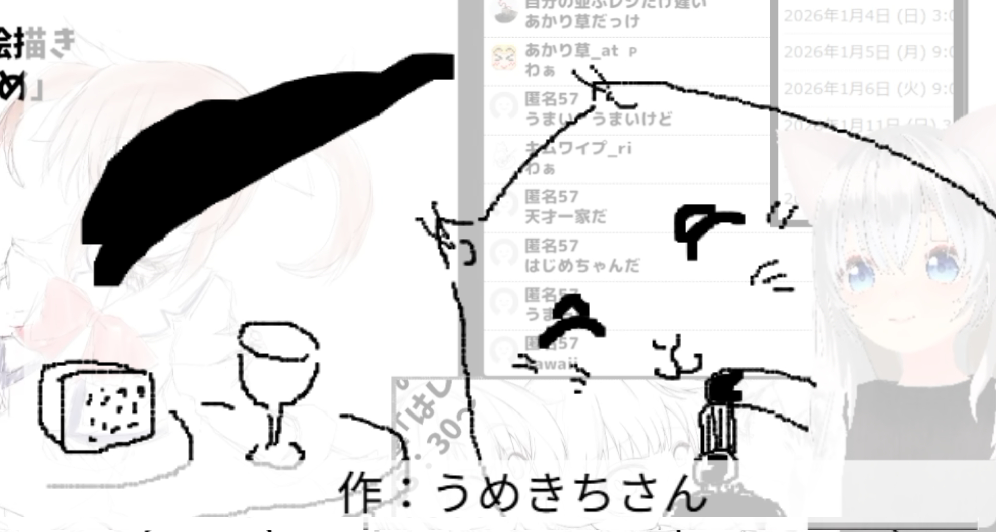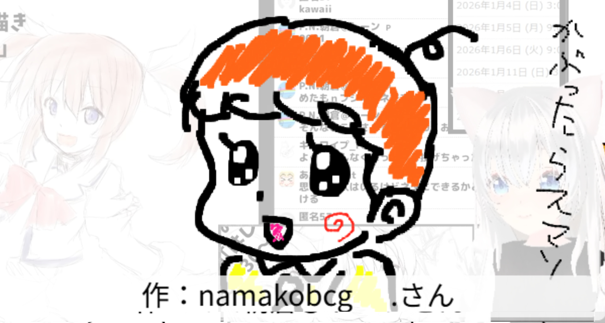 2026/01/05「はじめ」 2026.01.05 ホーム › フォーラム › お題でお絵かき保存場所 › 2026/01/05「はじめ」 このトピックには7件の返信、1人の参加者があり、最後に竹ちくわにより1週、 1日前に更新されました。 7件の返信スレッドを表示中 投稿者 投稿 2026年1月5日 (月) 11:27 PM #3567 返信 竹ちくわキーマスター 仕事始めだったので このトピックは竹ちくわが1週、 1日前に変更しました。 2026年1月5日 (月) 11:29 PM #3569 返信 竹ちくわキーマスター 魔法少女リリカルなのはより第一話「魔法少女はじめました」より Attachments:260105.jpg 2026年1月5日 (月) 11:34 PM #3571 返信 竹ちくわキーマスター はじめ人間ギャートルズ 作:DUKeさん Attachments:260105_01.jpg 2026年1月5日 (月) 11:36 PM #3573 返信 竹ちくわキーマスター 図鑑001 メタモン フシギダネ 作:P.N.朝倉@トーンさん Attachments:260105_02.jpg 2026年1月5日 (月) 11:37 PM #3575 返信 竹ちくわキーマスター 「天才バカボン」よりハジメちゃん 作:namakobcgさん Attachments:260105_03.jpg 2026年1月5日 (月) 11:38 PM #3577 返信 竹ちくわキーマスター 五十音の初めのあから始まるキャラで あかり草 作:KCゴムさん この返信は1週、 1日前に竹ちくわが編集しました。 Attachments:260105_04.jpg 2026年1月5日 (月) 11:39 PM #3580 返信 竹ちくわキーマスター 飲み始め 作:うめきちさん Attachments:260105_05.jpg 2026年1月5日 (月) 11:41 PM #3582 返信 竹ちくわキーマスター 『だがしかし』より尾張ハジメ 作:キムワイプさん 投稿者 投稿 7件の返信スレッドを表示中 返信先: 2026/01/05「はじめ」 あなたの情報: お名前 (必須) メール (非公開): ウェブサイト: 以下の HTML タグと属性を使用できます。 <a href="" title="" rel="" target=""> <blockquote cite=""> <code> <pre class=""> <em> <strong> <del datetime="" cite=""> <ins datetime="" cite=""> <ul> <ol start=""> <li> <img src="" border="" alt="" height="" width=""> Upload Attachments Maximum file size allowed is 4 MB. Attachments: Add another file キャンセル 送信