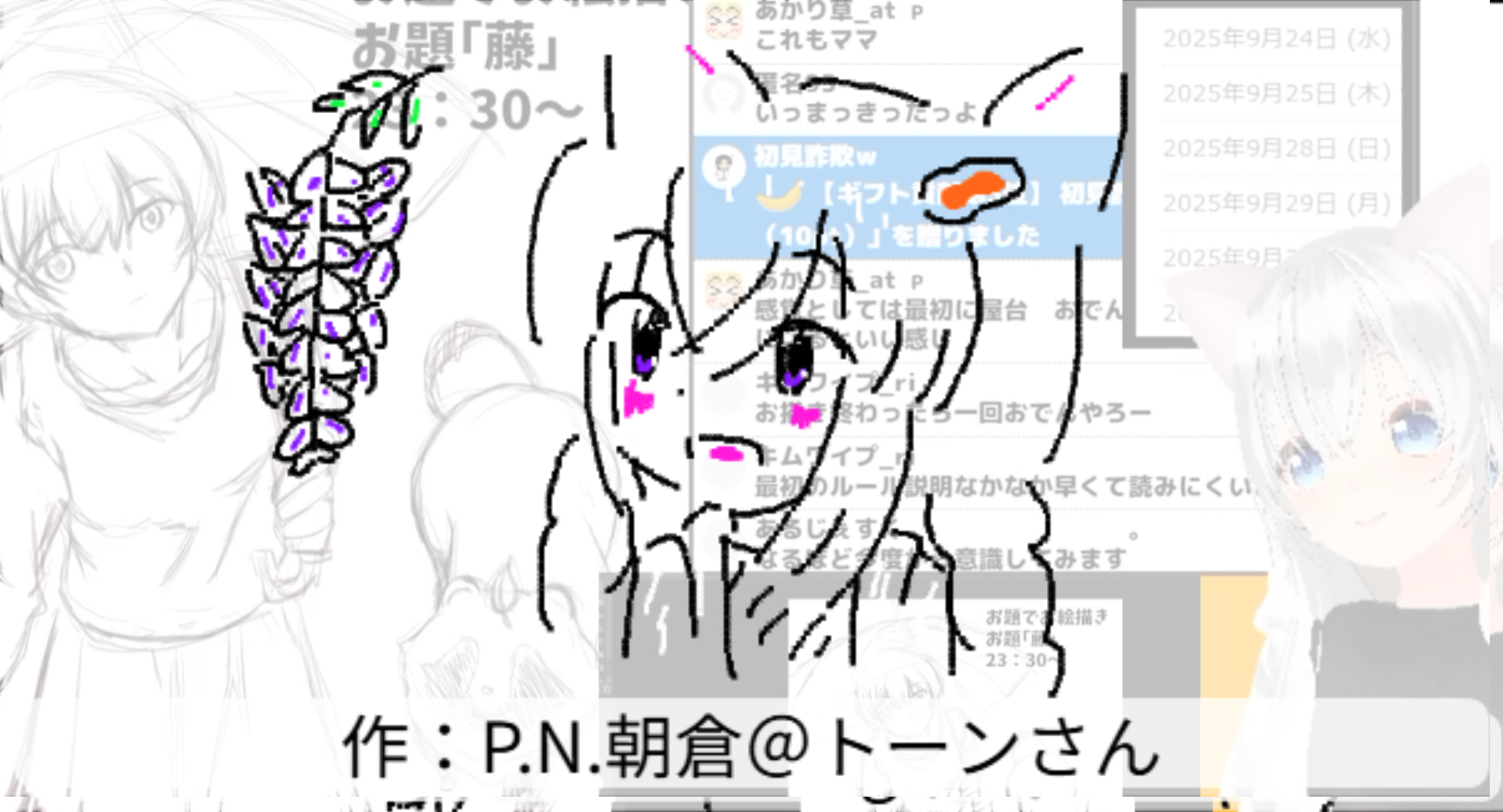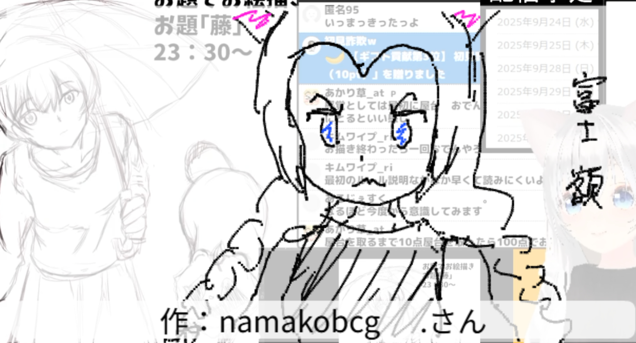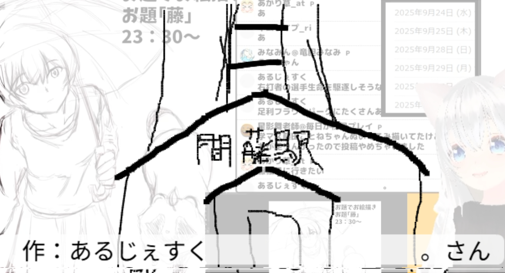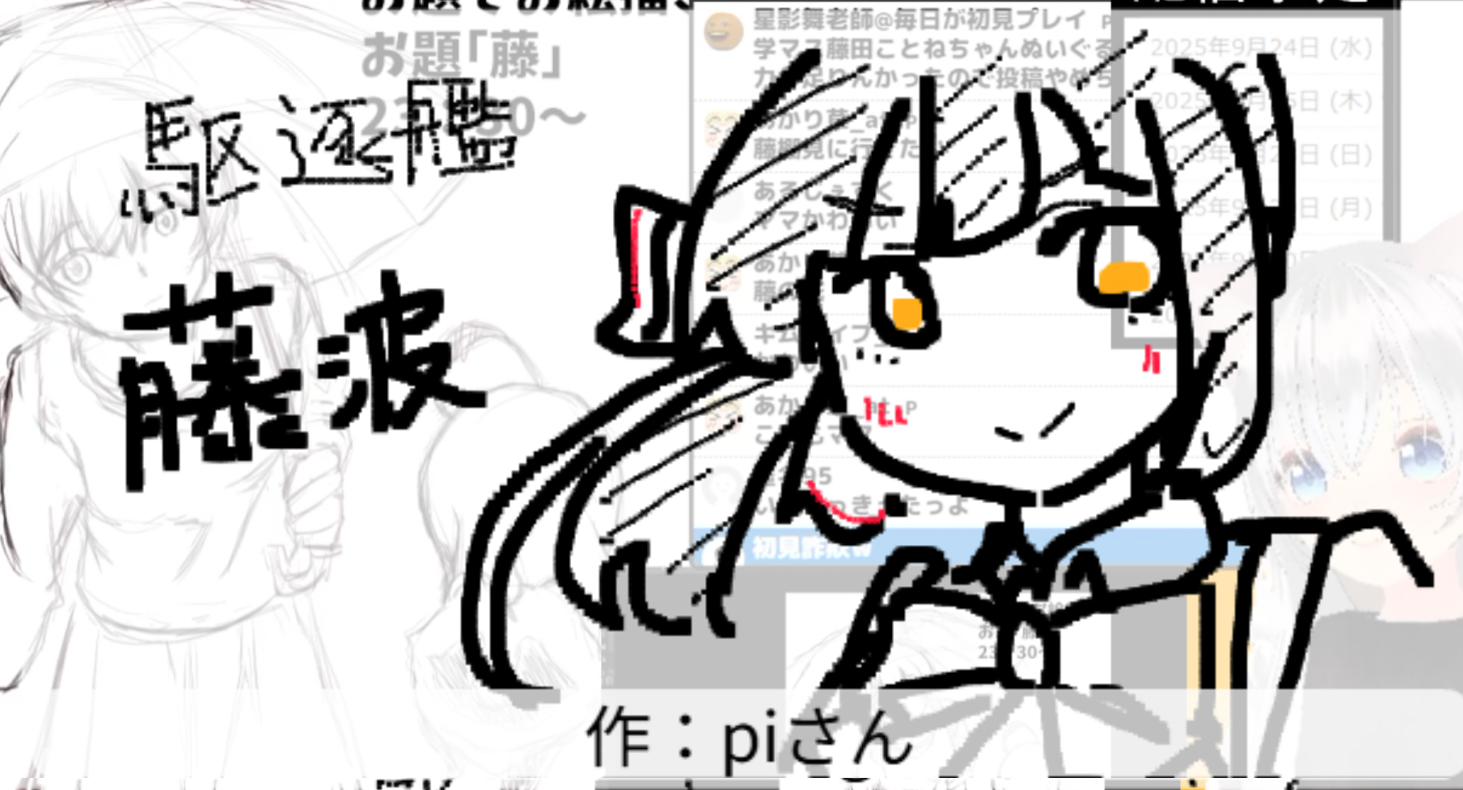 2025/09/25「藤」 2025.09.25 ホーム › フォーラム › お題でお絵かき保存場所 › 2025/09/25「藤」 このトピックには8件の返信、1人の参加者があり、最後に竹ちくわにより4週、 1日前に更新されました。 8件の返信スレッドを表示中 投稿者 投稿 2025年9月25日 (木) 11:32 PM #2662 返信 竹ちくわキーマスター 藤ノ木古墳記念日らしいので 2025年9月25日 (木) 11:33 PM #2663 返信 竹ちくわキーマスター 雨と君と Attachments:250925.jpg 2025年9月25日 (木) 11:35 PM #2665 返信 竹ちくわキーマスター 富士額 作:namakobcgさん Attachments:250925_01.jpg 2025年9月25日 (木) 11:36 PM #2667 返信 竹ちくわキーマスター 藤の花 作:P.N.朝倉@トーンさん Attachments:250925_02.jpg 2025年9月25日 (木) 11:38 PM #2669 返信 竹ちくわキーマスター 艦これより駆逐艦藤波 作:piさん Attachments:250925_04.jpg 2025年9月25日 (木) 11:39 PM #2671 返信 竹ちくわキーマスター さとうささら 作:シスの文学卿さん Attachments:250925_04-1.jpg 2025年9月25日 (木) 11:40 PM #2673 返信 竹ちくわキーマスター 藤子不二雄よりドラえもん 作:DUKeさん Attachments:250925_05.jpg 2025年9月25日 (木) 11:40 PM #2675 返信 竹ちくわキーマスター 藤子不二雄よりドラえもん 作:キムワイプもぐもぐさん Attachments:250925_06.jpg 2025年9月25日 (木) 11:41 PM #2677 返信 竹ちくわキーマスター 間藤駅 作:あるじぇすくさん Attachments:250925_07.jpg 投稿者 投稿 8件の返信スレッドを表示中 返信先: 2025/09/25「藤」 あなたの情報: お名前 (必須) メール (非公開): ウェブサイト: 以下の HTML タグと属性を使用できます。 <a href="" title="" rel="" target=""> <blockquote cite=""> <code> <pre class=""> <em> <strong> <del datetime="" cite=""> <ins datetime="" cite=""> <ul> <ol start=""> <li> <img src="" border="" alt="" height="" width=""> Upload Attachments Maximum file size allowed is 2 MB. Attachments: Add another file キャンセル 送信