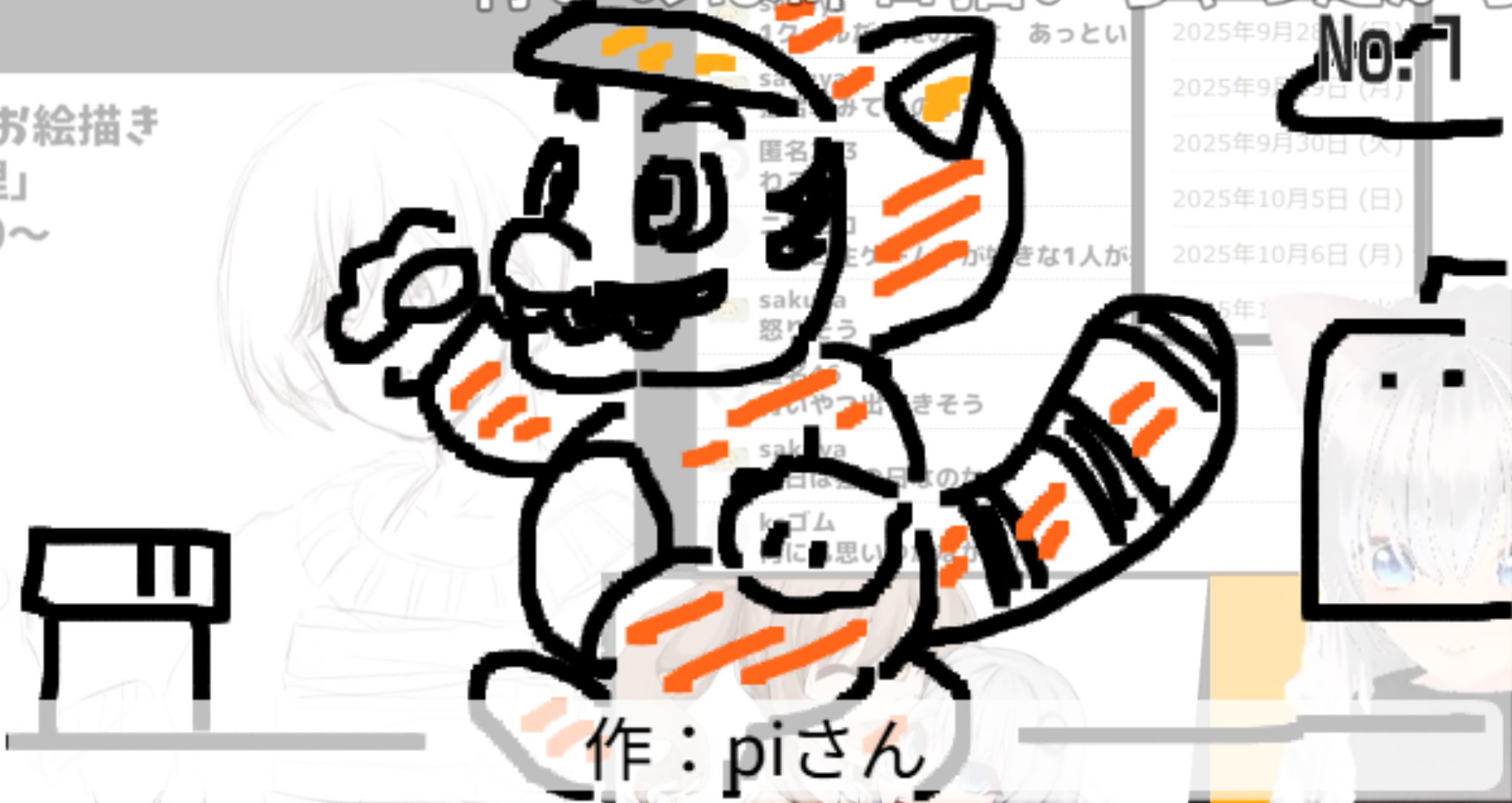 2025/09/28「狸」 2025.09.28 ホーム › フォーラム › お題でお絵かき保存場所 › 2025/09/28「狸」 このトピックには9件の返信、1人の参加者があり、最後に竹ちくわにより3週、 5日前に更新されました。 9件の返信スレッドを表示中 投稿者 投稿 2025年9月28日 (日) 8:31 PM #2679 返信 竹ちくわキーマスター アニメ「雨と君と」が最終回を迎えたので 2025年9月28日 (日) 8:33 PM #2681 返信 竹ちくわキーマスター 雨と君と Attachments:250928.jpg 2025年9月28日 (日) 8:35 PM #2683 返信 竹ちくわキーマスター たぬきマリオ 作:piさん Attachments:250928_01.jpg 2025年9月28日 (日) 8:36 PM #2685 返信 竹ちくわキーマスター 型抜き 作:みなみんさん Attachments:250928_02.jpg 2025年9月28日 (日) 8:37 PM #2687 返信 竹ちくわキーマスター 東方projectより二ッ岩マミゾウ 作:うしさん Attachments:250928_03.jpg 2025年9月28日 (日) 8:38 PM #2689 返信 竹ちくわキーマスター 雨と君とより君 作:キザカシンジさん Attachments:250928_04.jpg 2025年9月28日 (日) 8:39 PM #2691 返信 竹ちくわキーマスター たぬきの帽子 作:P.N.朝倉@トーンさん Attachments:250928_05.jpg 2025年9月28日 (日) 8:40 PM #2693 返信 竹ちくわキーマスター ぽこニャン 作:DUKeさん Attachments:250928_06.jpg 2025年9月28日 (日) 8:41 PM #2695 返信 竹ちくわキーマスター タヌキ顔 作:殻つきひよこさん Attachments:250928_07.jpg 2025年9月28日 (日) 8:43 PM #2697 返信 竹ちくわキーマスター たぬきそば? 作:KCゴムさん Attachments:250928_08.jpg 投稿者 投稿 9件の返信スレッドを表示中 返信先: 2025/09/28「狸」 あなたの情報: お名前 (必須) メール (非公開): ウェブサイト: 以下の HTML タグと属性を使用できます。 <a href="" title="" rel="" target=""> <blockquote cite=""> <code> <pre class=""> <em> <strong> <del datetime="" cite=""> <ins datetime="" cite=""> <ul> <ol start=""> <li> <img src="" border="" alt="" height="" width=""> Upload Attachments Maximum file size allowed is 2 MB. Attachments: Add another file キャンセル 送信