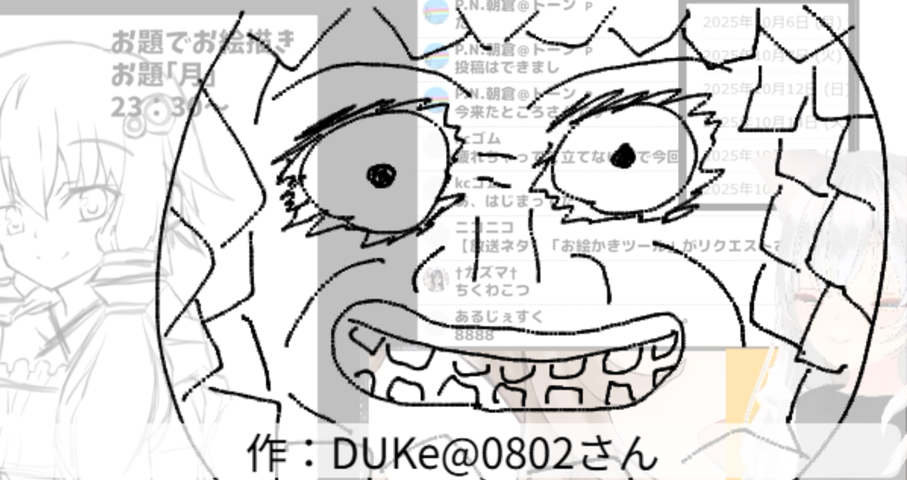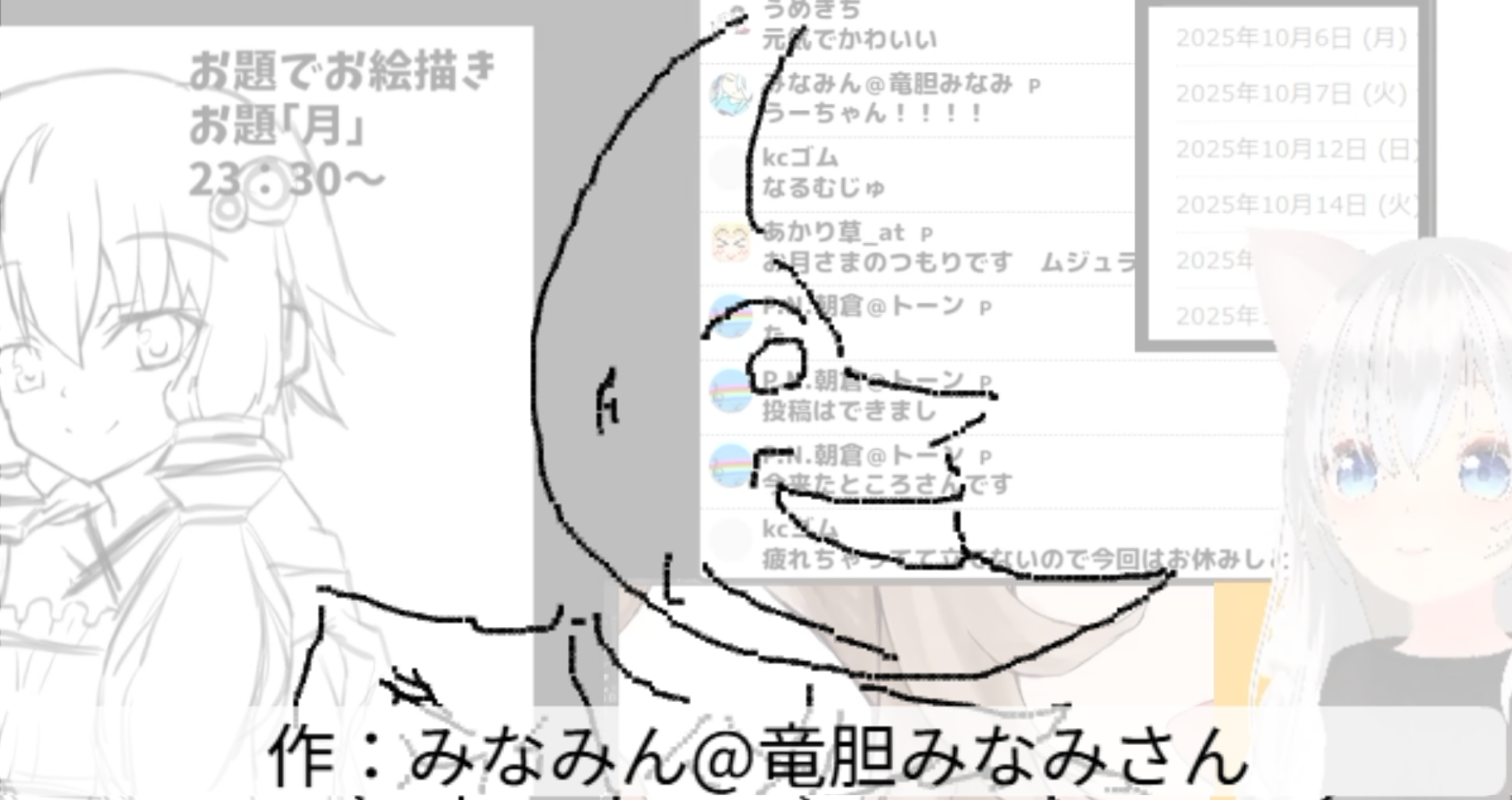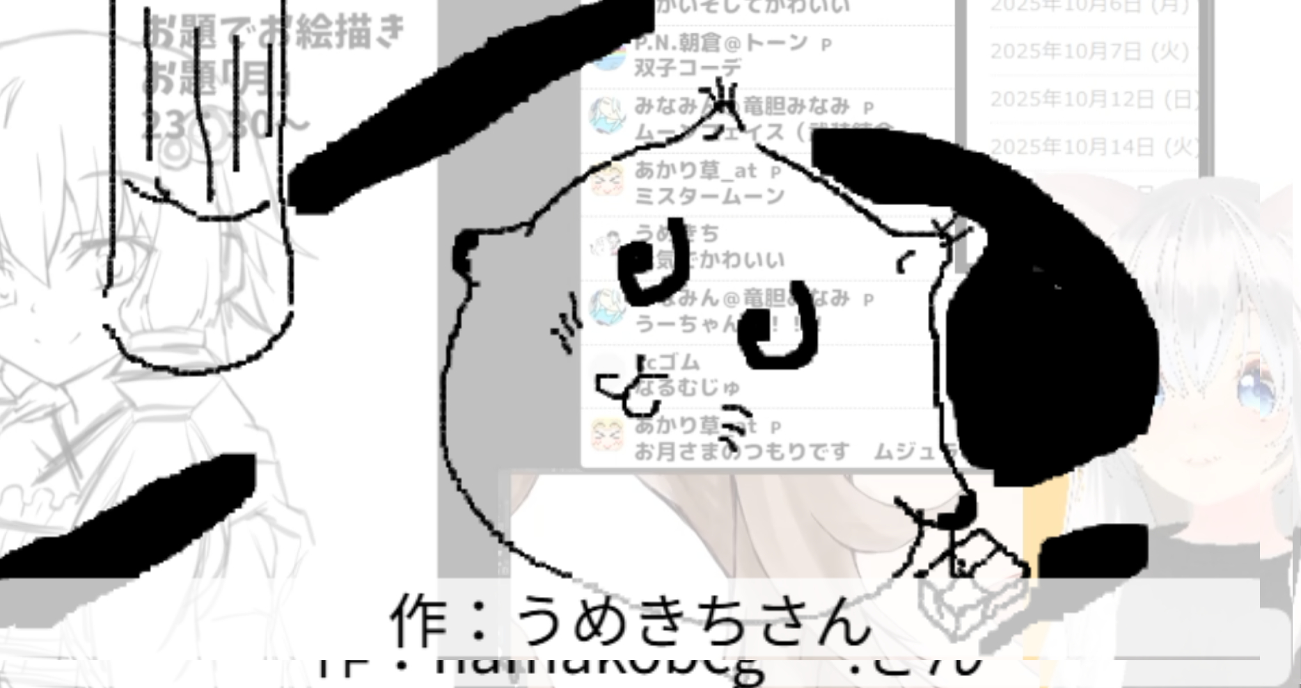 2025/10/06「月」 2025.10.06 ホーム › フォーラム › お題でお絵かき保存場所 › 2025/10/06「月」 このトピックには8件の返信、1人の参加者があり、最後に竹ちくわにより2週、 4日前に更新されました。 8件の返信スレッドを表示中 投稿者 投稿 2025年10月6日 (月) 11:30 PM #2770 返信 竹ちくわキーマスター 中秋の名月らしいので 2025年10月6日 (月) 11:31 PM #2771 返信 竹ちくわキーマスター 結月ゆかり Attachments:251006.jpg 2025年10月6日 (月) 11:34 PM #2773 返信 竹ちくわキーマスター 『ゼルダの伝説 ムジュラの仮面』より月 作:DUKeさん Attachments:251006_01.jpg 2025年10月6日 (月) 11:35 PM #2775 返信 竹ちくわキーマスター 艦これより卯月 作:piさん Attachments:251006_02.jpg 2025年10月6日 (月) 11:37 PM #2777 返信 竹ちくわキーマスター 武装錬金よりムーンフェイス 作:みなみんさん Attachments:251006_03.jpg 2025年10月6日 (月) 11:37 PM #2779 返信 竹ちくわキーマスター 結月ゆかり雫 作:シスの文学卿さん Attachments:251006_04.jpg 2025年10月6日 (月) 11:38 PM #2781 返信 竹ちくわキーマスター 結月ゆかりと紲星あかり 作:P.N.朝倉@トーンさん Attachments:251006_05.jpg 2025年10月6日 (月) 11:39 PM #2783 返信 竹ちくわキーマスター 今だけ月見食べ美 作:namakobcgさん Attachments:251006_06.jpg 2025年10月6日 (月) 11:40 PM #2785 返信 竹ちくわキーマスター 月を見上げる 作:うめきちさん Attachments:251006_07.jpg 投稿者 投稿 8件の返信スレッドを表示中 返信先: 2025/10/06「月」 あなたの情報: お名前 (必須) メール (非公開): ウェブサイト: 以下の HTML タグと属性を使用できます。 <a href="" title="" rel="" target=""> <blockquote cite=""> <code> <pre class=""> <em> <strong> <del datetime="" cite=""> <ins datetime="" cite=""> <ul> <ol start=""> <li> <img src="" border="" alt="" height="" width=""> Upload Attachments Maximum file size allowed is 2 MB. Attachments: Add another file キャンセル 送信