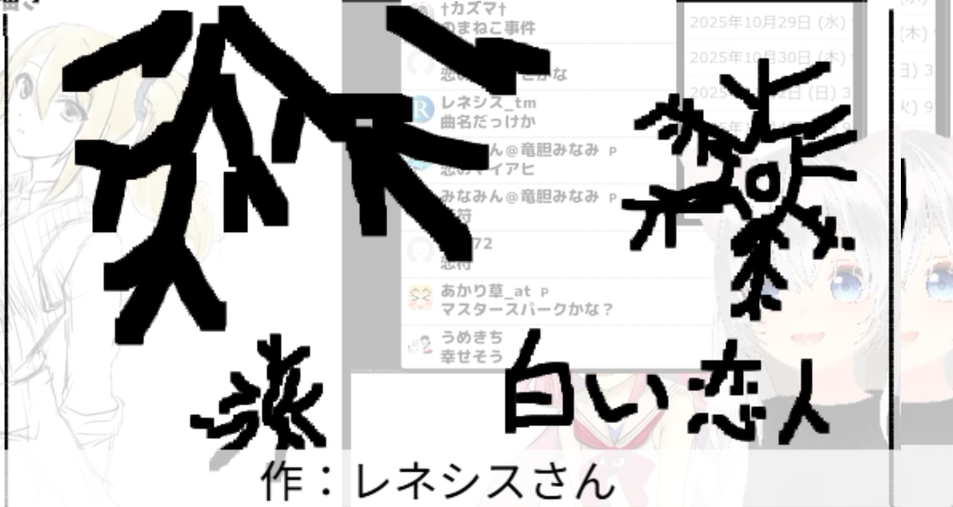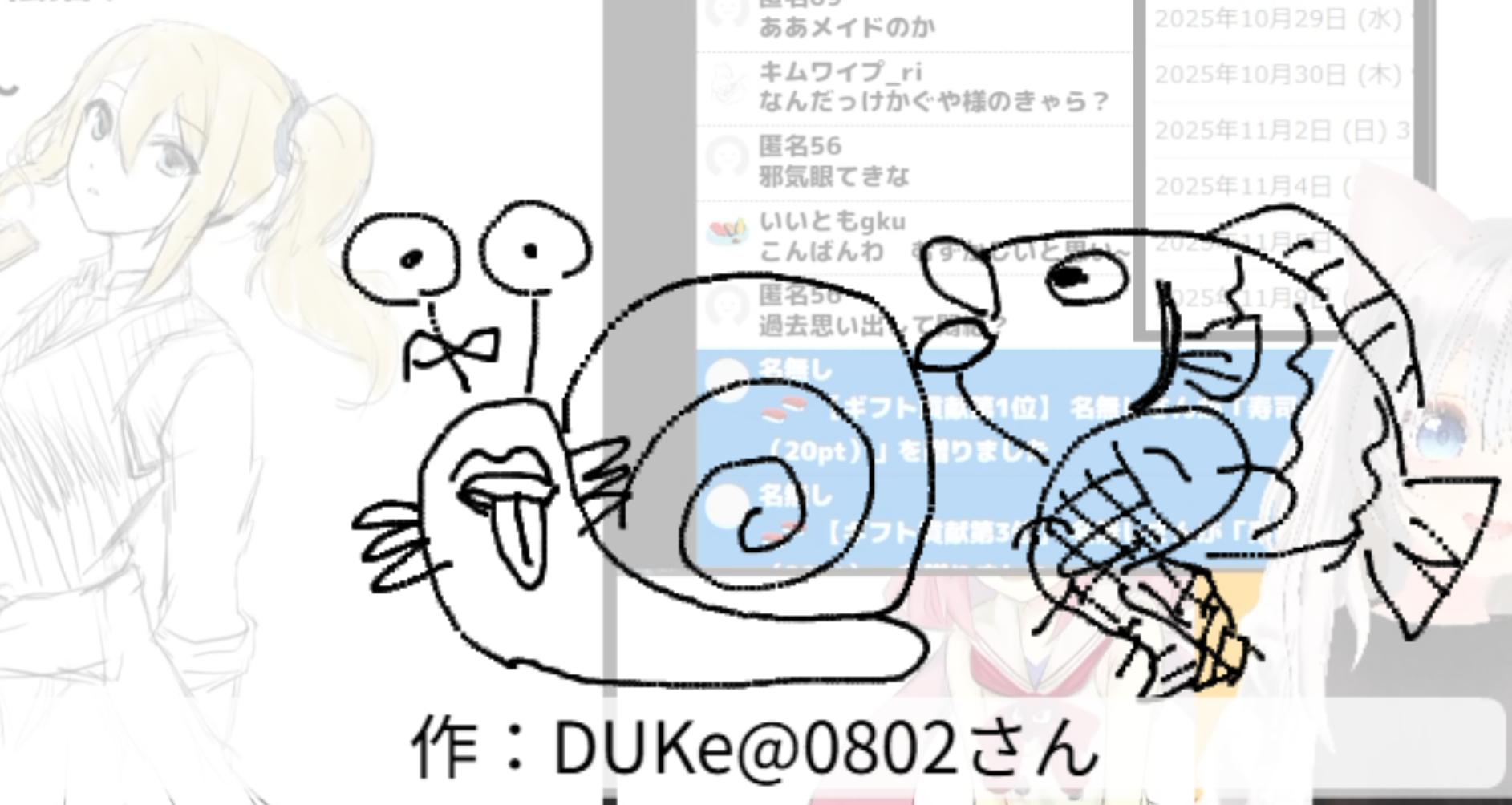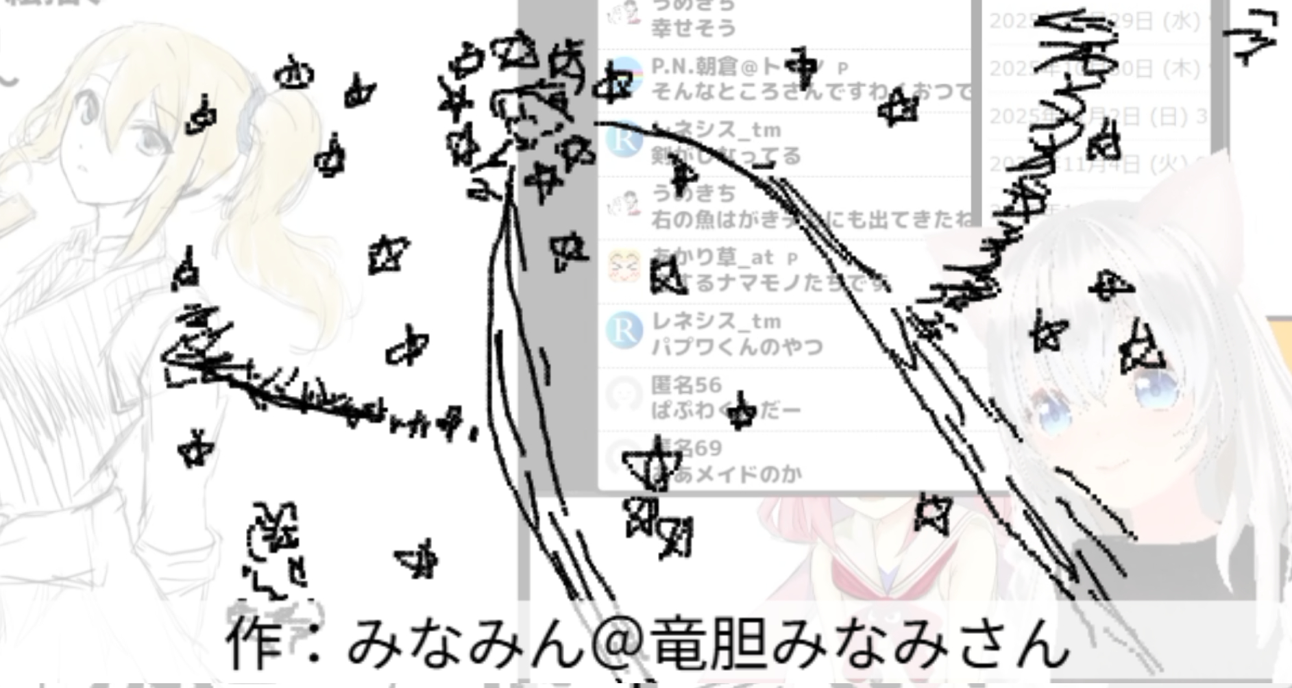 2025/10/29「恋」 2025.10.29 ホーム › フォーラム › お題でお絵かき保存場所 › 2025/10/29「恋」 このトピックには9件の返信、1人の参加者があり、最後に竹ちくわにより1週、 1日前に更新されました。 9件の返信スレッドを表示中 投稿者 投稿 2025年10月29日 (水) 11:32 PM #2970 返信 竹ちくわキーマスター 明日が初恋の日らしいので 2025年10月29日 (水) 11:33 PM #2971 返信 竹ちくわキーマスター かぐや様は告らせたい〜天才たちの恋愛頭脳戦〜より早坂愛 Attachments:251029.jpg 2025年10月29日 (水) 11:36 PM #2973 返信 竹ちくわキーマスター 南国少年パプワくんより恋するナマモノ 作:DUKeさん この返信は1週、 1日前に竹ちくわが編集しました。 Attachments:251029_01.jpg 2025年10月29日 (水) 11:38 PM #2976 返信 竹ちくわキーマスター 鬼滅の刃 甘露寺蜜璃 作:piさん Attachments:251029_02.jpg 2025年10月29日 (水) 11:38 PM #2978 返信 竹ちくわキーマスター 作:P.N.朝倉@トーンさん Attachments:251029_03.jpg 2025年10月29日 (水) 11:40 PM #2980 返信 竹ちくわキーマスター 「恋符・マスタースパーク」 作:みなみんさん Attachments:251029_04.jpg 2025年10月29日 (水) 11:40 PM #2982 返信 竹ちくわキーマスター 恋バナ 作:namakobcgさん Attachments:251029_05.jpg 2025年10月29日 (水) 11:41 PM #2984 返信 竹ちくわキーマスター 恋のマイアヒ 作:ゲストさん Attachments:251029_06.jpg 2025年10月29日 (水) 11:42 PM #2986 返信 竹ちくわキーマスター 白い恋人 作:レネシスさん Attachments:251029_07.jpg 2025年10月29日 (水) 11:42 PM #2988 返信 竹ちくわキーマスター ラブレター 作:うめきちさん Attachments:251029_08.jpg 投稿者 投稿 9件の返信スレッドを表示中 返信先: 2025/10/29「恋」 あなたの情報: お名前 (必須) メール (非公開): ウェブサイト: 以下の HTML タグと属性を使用できます。 <a href="" title="" rel="" target=""> <blockquote cite=""> <code> <pre class=""> <em> <strong> <del datetime="" cite=""> <ins datetime="" cite=""> <ul> <ol start=""> <li> <img src="" border="" alt="" height="" width=""> Upload Attachments Maximum file size allowed is 2 MB. Attachments: Add another file キャンセル 送信