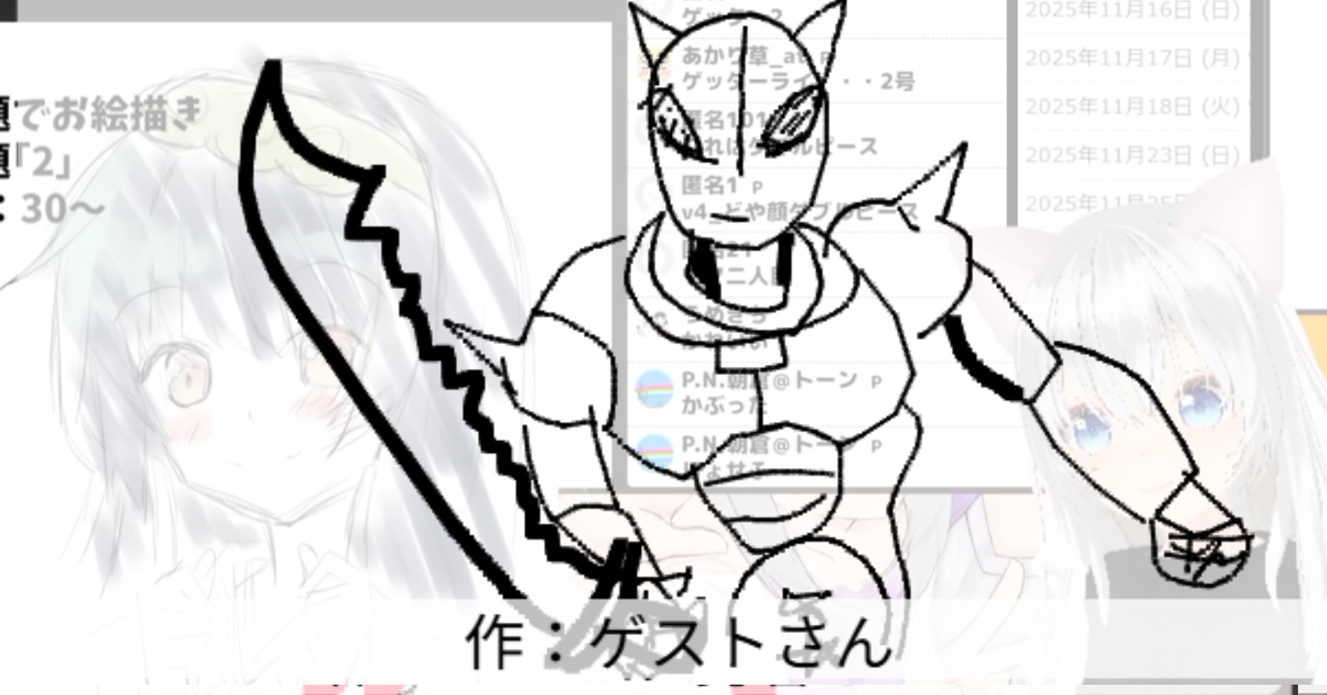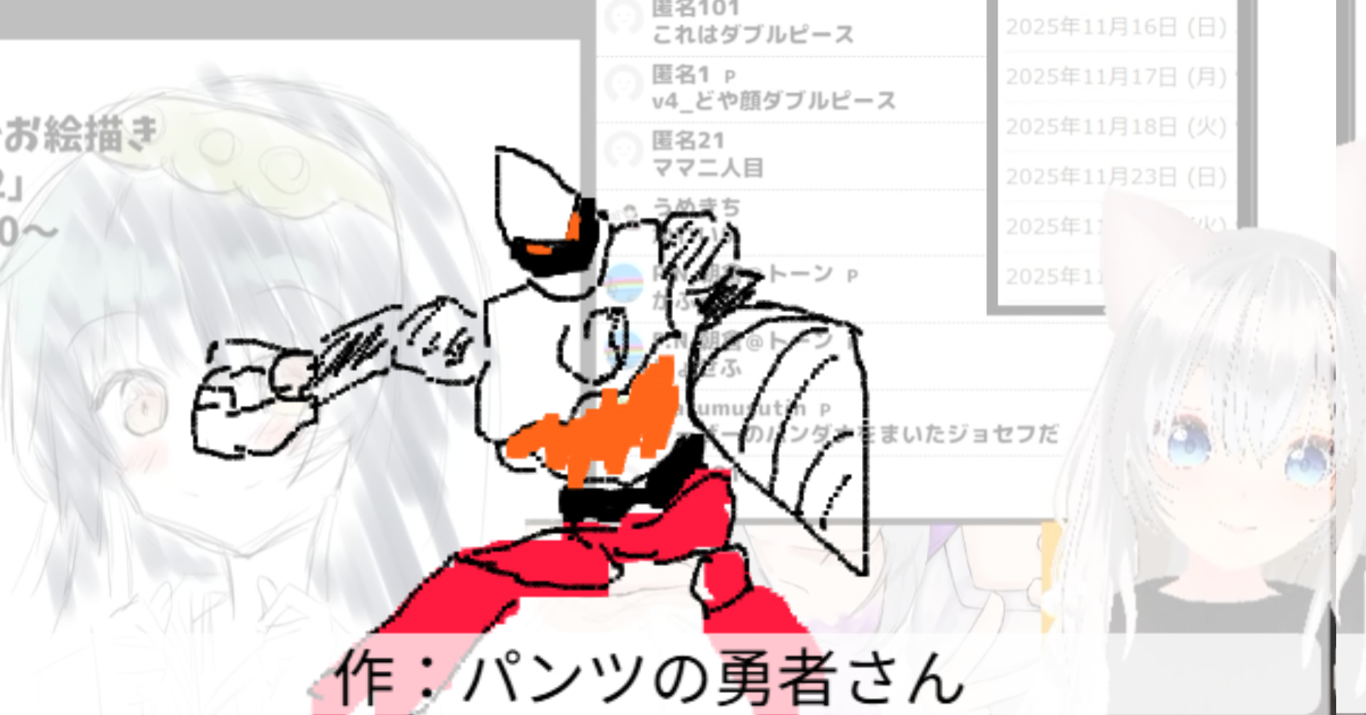 2025/11/17「2」 2025.11.17 ホーム › フォーラム › お題でお絵かき保存場所 › 2025/11/17「2」 このトピックには9件の返信、1人の参加者があり、最後に竹ちくわにより6時間、 52分前に更新されました。 9件の返信スレッドを表示中 投稿者 投稿 2025年11月17日 (月) 11:31 PM #3163 返信 竹ちくわキーマスター 「空の軌跡 the 2nd」の発売予定のニュースをみたので 2025年11月17日 (月) 11:33 PM #3164 返信 竹ちくわキーマスター 二女 東北ずん子 Attachments:251117.jpg 2025年11月17日 (月) 11:36 PM #3166 返信 竹ちくわキーマスター R2D2 作:piさん Attachments:251117_01.jpg 2025年11月17日 (月) 11:37 PM #3168 返信 竹ちくわキーマスター ピース 作:P.N.朝倉@トーンさん Attachments:251117_02.jpg 2025年11月17日 (月) 11:37 PM #3170 返信 竹ちくわキーマスター R2D2 作:DUKeさん Attachments:251117_03.jpg 2025年11月17日 (月) 11:38 PM #3172 返信 竹ちくわキーマスター ジョジョ2部 作:みなみんさん Attachments:251117_04.jpg 2025年11月17日 (月) 11:39 PM #3174 返信 竹ちくわキーマスター Wピース 作:marumusutinさん Attachments:251117_05.jpg 2025年11月17日 (月) 11:40 PM #3176 返信 竹ちくわキーマスター ゲッター2 作:パンツの勇者さん Attachments:251117_06.jpg 2025年11月17日 (月) 11:41 PM #3178 返信 竹ちくわキーマスター 大魔界のドラゴンボールを守るタマガミ・ナンバー・ツー 作:ゲストさん Attachments:251117_07.jpg 2025年11月17日 (月) 11:41 PM #3180 返信 竹ちくわキーマスター 肉まんふたつ 作:うめきちさん Attachments:251117_08.jpg 投稿者 投稿 9件の返信スレッドを表示中 返信先: 2025/11/17「2」 あなたの情報: お名前 (必須) メール (非公開): ウェブサイト: 以下の HTML タグと属性を使用できます。 <a href="" title="" rel="" target=""> <blockquote cite=""> <code> <pre class=""> <em> <strong> <del datetime="" cite=""> <ins datetime="" cite=""> <ul> <ol start=""> <li> <img src="" border="" alt="" height="" width=""> Upload Attachments Maximum file size allowed is 2 MB. Attachments: Add another file キャンセル 送信