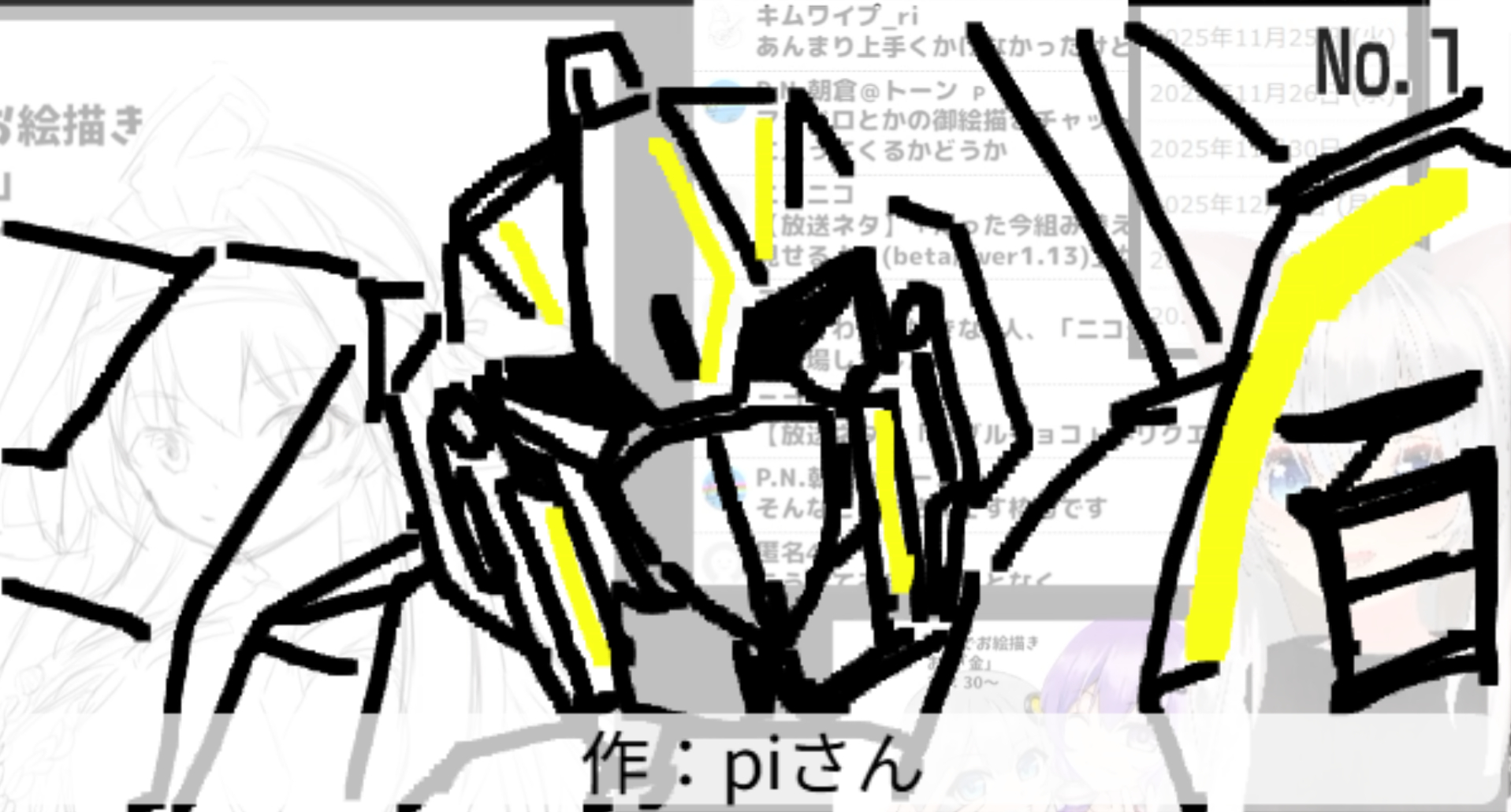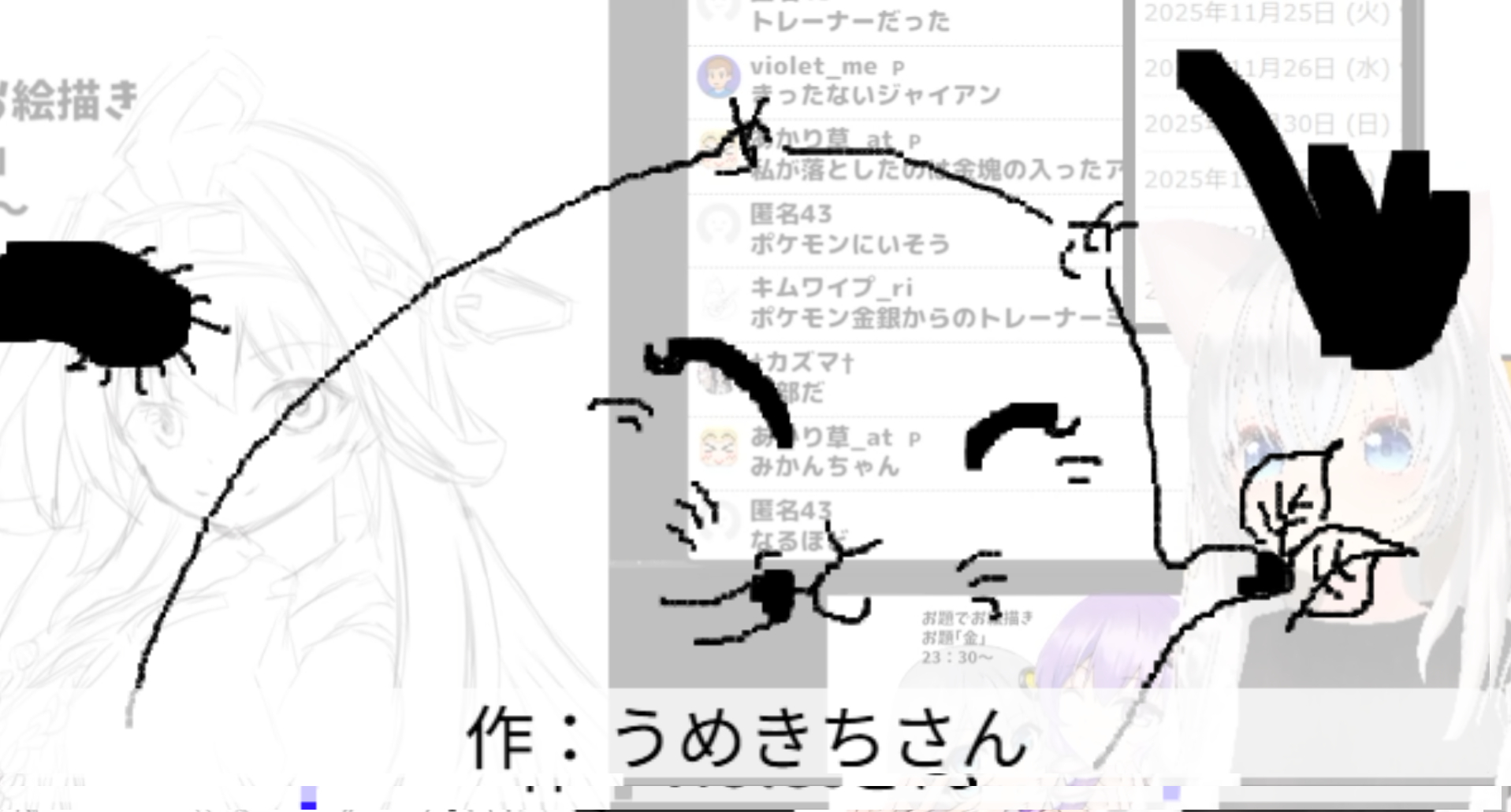 2025/11/25「金」 2025.11.25 ホーム › フォーラム › お題でお絵かき保存場所 › 2025/11/25「金」 このトピックには7件の返信、1人の参加者があり、最後に竹ちくわにより1週前に更新されました。 7件の返信スレッドを表示中 投稿者 投稿 2025年11月25日 (火) 9:54 PM #3226 返信 竹ちくわキーマスター 金型の日らしいので 2025年11月25日 (火) 11:32 PM #3227 返信 竹ちくわキーマスター 艦これより金剛 Attachments:251125.jpg 2025年11月25日 (火) 11:35 PM #3229 返信 竹ちくわキーマスター 百式 作:piさん Attachments:251125_01.jpg 2025年11月25日 (火) 11:35 PM #3231 返信 竹ちくわキーマスター 作:DUKeさん Attachments:251125_02.jpg 2025年11月25日 (火) 11:36 PM #3233 返信 竹ちくわキーマスター 金メダル 作:P.N.朝倉@トーンさん Attachments:251125_03.jpg 2025年11月25日 (火) 11:37 PM #3235 返信 竹ちくわキーマスター 金の斧 作:violetさん Attachments:251125_04.jpg 2025年11月25日 (火) 11:38 PM #3237 返信 竹ちくわキーマスター 『ポケットモンスター 金・銀・クリスタル』ミカン(ポケモン) 作:キムワイプさん Attachments:251125_05.jpg 2025年11月25日 (火) 11:39 PM #3239 返信 竹ちくわキーマスター 葉っぱのお金 作:うめきちさん Attachments:251125_06.jpg 投稿者 投稿 7件の返信スレッドを表示中 返信先: 2025/11/25「金」 あなたの情報: お名前 (必須) メール (非公開): ウェブサイト: 以下の HTML タグと属性を使用できます。 <a href="" title="" rel="" target=""> <blockquote cite=""> <code> <pre class=""> <em> <strong> <del datetime="" cite=""> <ins datetime="" cite=""> <ul> <ol start=""> <li> <img src="" border="" alt="" height="" width=""> Upload Attachments Maximum file size allowed is 2 MB. Attachments: Add another file キャンセル 送信