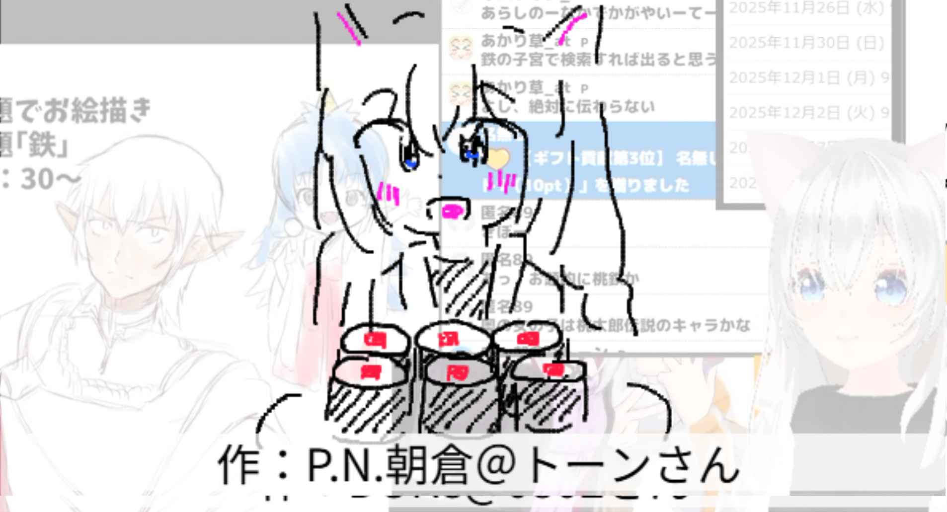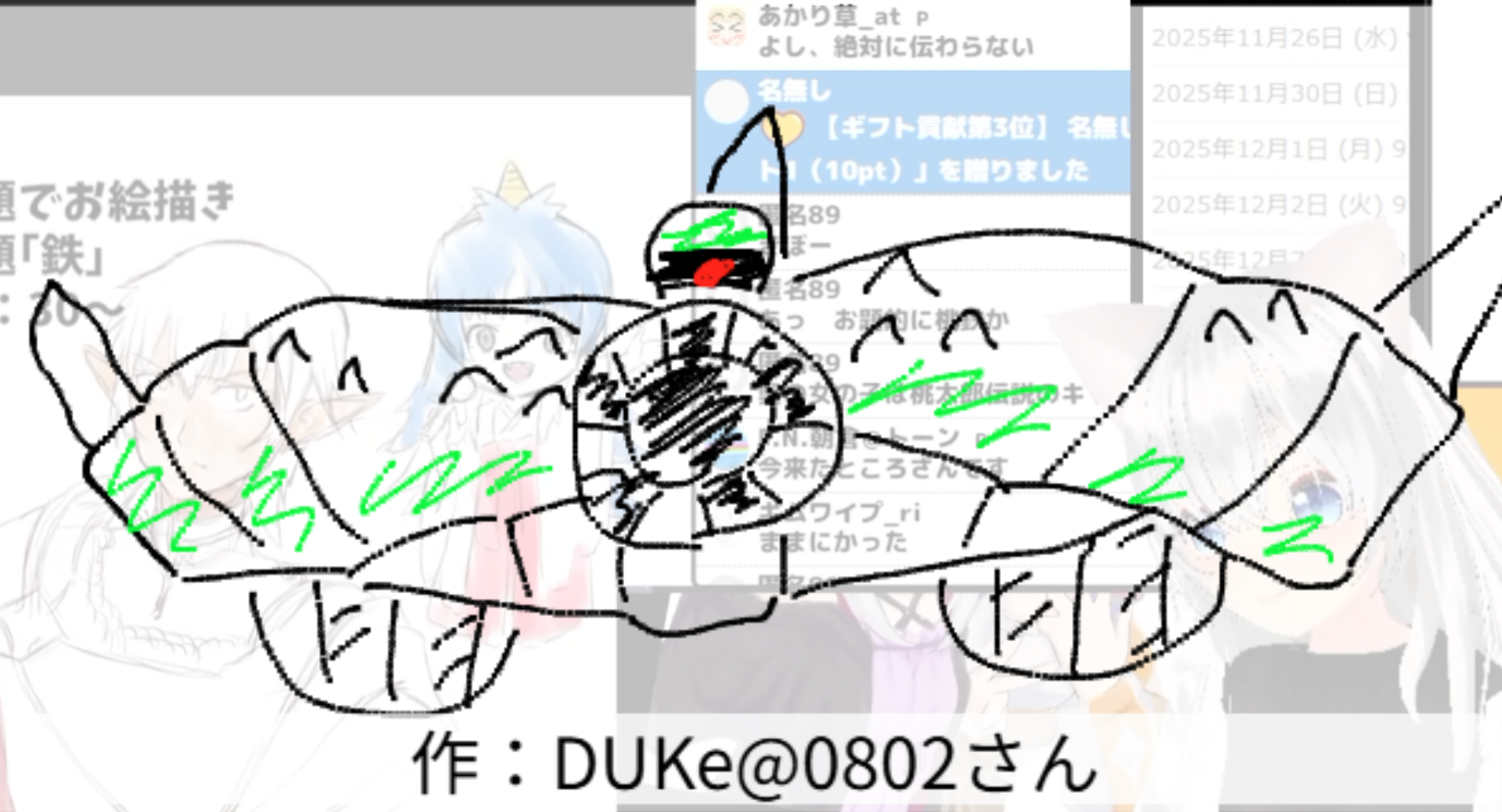 2025/11/26「鉄」 2025.11.26 ホーム › フォーラム › お題でお絵かき保存場所 › 2025/11/26「鉄」 このトピックには5件の返信、1人の参加者があり、最後に竹ちくわにより6日、 11時間前に更新されました。 5件の返信スレッドを表示中 投稿者 投稿 2025年11月26日 (水) 11:32 PM #3241 返信 竹ちくわキーマスター 鉄分の日らしいので 2025年11月26日 (水) 11:33 PM #3242 返信 竹ちくわキーマスター 黄金の鉄の塊 ブロントさん 桃鉄より夜叉姫 Attachments:251126.jpg 2025年11月26日 (水) 11:37 PM #3244 返信 竹ちくわキーマスター 「機動戦士ガンダム 第08MS小隊」よりアプサラス 鉄の子宮 作:DUKeさん Attachments:251126_01.jpg 2025年11月26日 (水) 11:37 PM #3246 返信 竹ちくわキーマスター 鉄火巻き 作:P.N.朝倉@トーンさん Attachments:251126_02.jpg 2025年11月26日 (水) 11:39 PM #3248 返信 竹ちくわキーマスター ポケットモンスター 第9世代『スカーレット・バイオレット』よりテツノツツミ 作:キムワイプさん Attachments:251126_03.jpg 2025年11月26日 (水) 11:39 PM #3250 返信 竹ちくわキーマスター 隕鉄 作:うめきちさん Attachments:251126_04.jpg 投稿者 投稿 5件の返信スレッドを表示中 返信先: 2025/11/26「鉄」 あなたの情報: お名前 (必須) メール (非公開): ウェブサイト: 以下の HTML タグと属性を使用できます。 <a href="" title="" rel="" target=""> <blockquote cite=""> <code> <pre class=""> <em> <strong> <del datetime="" cite=""> <ins datetime="" cite=""> <ul> <ol start=""> <li> <img src="" border="" alt="" height="" width=""> Upload Attachments Maximum file size allowed is 2 MB. Attachments: Add another file キャンセル 送信