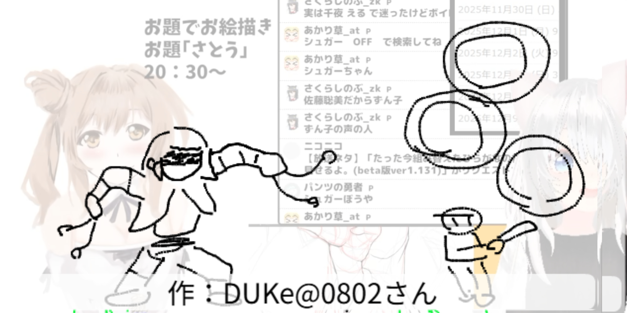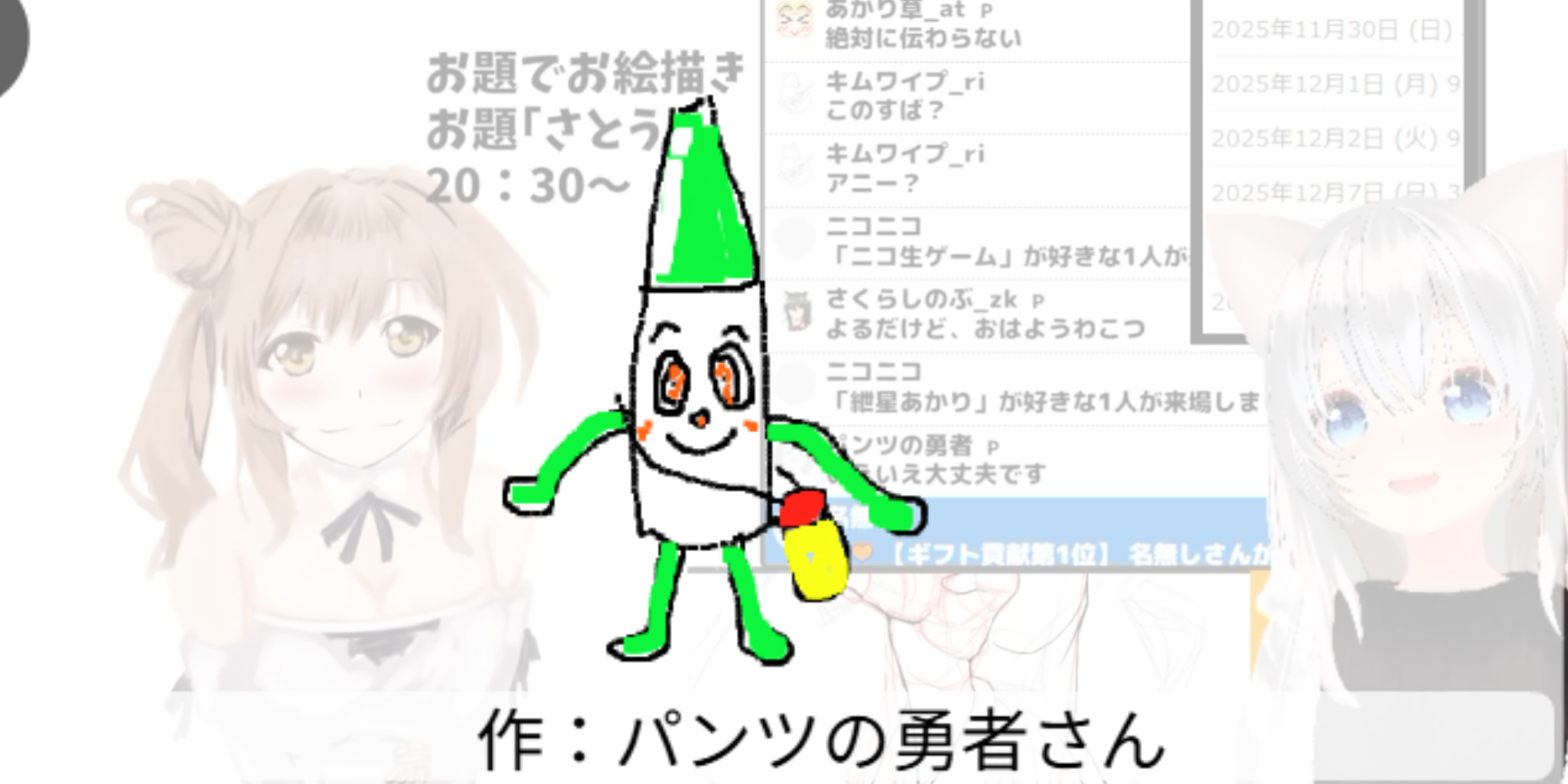 2025/11/30「さとう」 2025.11.30 ホーム › フォーラム › お題でお絵かき保存場所 › 2025/11/30「さとう」 このトピックには8件の返信、1人の参加者があり、最後に竹ちくわにより2日、 15時間前に更新されました。 8件の返信スレッドを表示中 投稿者 投稿 2025年11月30日 (日) 8:29 PM #3252 返信 竹ちくわキーマスター 砂糖の日らしいので 2025年11月30日 (日) 8:30 PM #3253 返信 竹ちくわキーマスター さとうささら Attachments:251130.jpg 2025年11月30日 (日) 8:35 PM #3255 返信 竹ちくわキーマスター 『それいけ!アンパンマン』シュガーぼうや 作:パンツの勇者さん Attachments:251130_01.jpg 2025年11月30日 (日) 8:36 PM #3257 返信 竹ちくわキーマスター 東北ずん子(C.V. 佐藤聡美さん) 作:さくらしのぶさん この返信は2日、 15時間前に竹ちくわが編集しました。 Attachments:251130_02.jpg 2025年11月30日 (日) 8:38 PM #3260 返信 竹ちくわキーマスター フリーゲーム「OFF」よりキャラクター「シュガー」 作:DUKeさん Attachments:251130_03.jpg 2025年11月30日 (日) 8:39 PM #3262 返信 竹ちくわキーマスター スティックシュガー 作:namakobcgさん Attachments:251130_04.jpg 2025年11月30日 (日) 8:40 PM #3264 返信 竹ちくわキーマスター 角砂糖 作:P.N.朝倉@トーンさん Attachments:251130_05.jpg 2025年11月30日 (日) 8:41 PM #3266 返信 竹ちくわキーマスター 砂糖菓子 作:キムワイプさん Attachments:251130_06.jpg 2025年11月30日 (日) 8:42 PM #3268 返信 竹ちくわキーマスター さとうささらさん 作:KCゴムさん Attachments:251130_07.jpg 投稿者 投稿 8件の返信スレッドを表示中 返信先: 2025/11/30「さとう」 あなたの情報: お名前 (必須) メール (非公開): ウェブサイト: 以下の HTML タグと属性を使用できます。 <a href="" title="" rel="" target=""> <blockquote cite=""> <code> <pre class=""> <em> <strong> <del datetime="" cite=""> <ins datetime="" cite=""> <ul> <ol start=""> <li> <img src="" border="" alt="" height="" width=""> Upload Attachments Maximum file size allowed is 2 MB. Attachments: Add another file キャンセル 送信