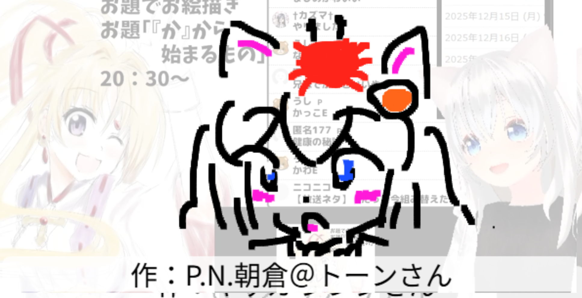 ホーム › フォーラム › お題でお絵かき保存場所 › 2025/12/14「『か』から始まるもの」