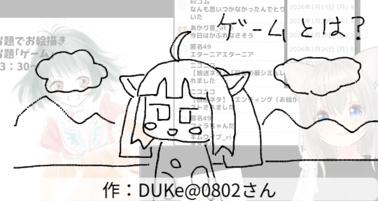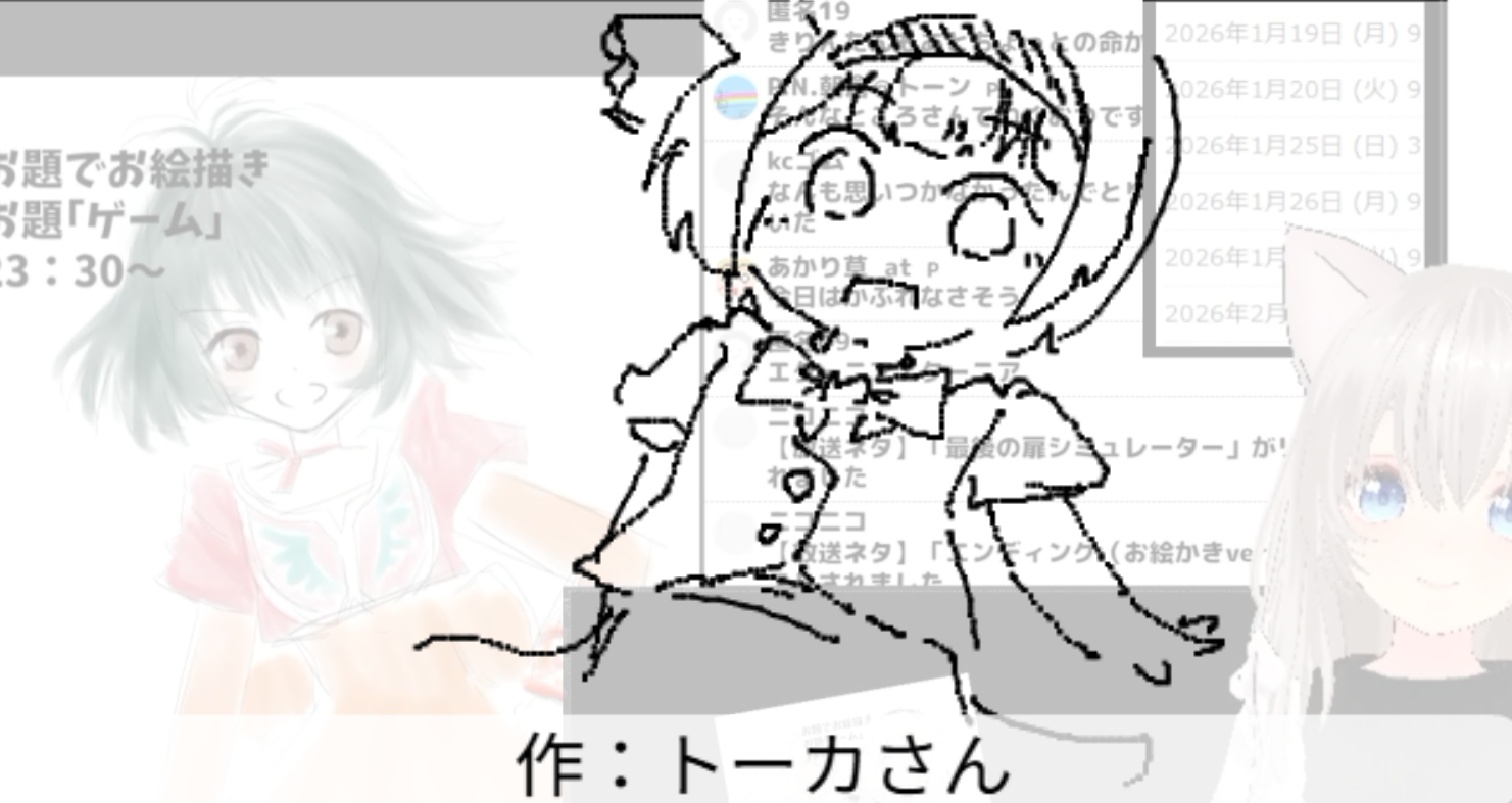 2026/01/19「ゲーム」 2026.01.19 ホーム › フォーラム › お題でお絵かき保存場所 › 2026/01/19「ゲーム」 このトピックには9件の返信、1人の参加者があり、最後に竹ちくわにより1日、 4時間前に更新されました。 9件の返信スレッドを表示中 投稿者 投稿 2026年1月19日 (月) 11:31 PM #3682 返信 竹ちくわキーマスター ゲームについて色々話してたから 2026年1月19日 (月) 11:32 PM #3683 返信 竹ちくわキーマスター テイルズオブエターニアよりファラ・エルステッド Attachments:260119.jpg 2026年1月19日 (月) 11:37 PM #3685 返信 竹ちくわキーマスター キリンたんシミュ 作:DUKeさん Attachments:260119_01.jpg 2026年1月19日 (月) 11:38 PM #3687 返信 竹ちくわキーマスター 東方妖々夢より魂魄 妖夢 作:トーカさん Attachments:260119_02.jpg 2026年1月19日 (月) 11:39 PM #3689 返信 竹ちくわキーマスター アカリがやってきたぞっ 作:P.N.朝倉@トーンさん Attachments:260119_03.jpg 2026年1月19日 (月) 11:39 PM #3691 返信 竹ちくわキーマスター スプラトゥーン 作:namakobcgさん Attachments:260119_04.jpg 2026年1月19日 (月) 11:40 PM #3693 返信 竹ちくわキーマスター 作:KCゴムさん Attachments:260119_05.jpg 2026年1月19日 (月) 11:41 PM #3695 返信 竹ちくわキーマスター ドラクエのスライムとマリオのファイアフラワー 作:あるじぇすくさん Attachments:260119_06.jpg 2026年1月19日 (月) 11:42 PM #3697 返信 竹ちくわキーマスター ファイナルファンタジーよりサボテンダー 作:キムワイプさん Attachments:260119_07.jpg 2026年1月19日 (月) 11:43 PM #3699 返信 竹ちくわキーマスター レーシングゲーム 作:うめきちさん Attachments:260119_08.jpg 投稿者 投稿 9件の返信スレッドを表示中 返信先: 2026/01/19「ゲーム」 あなたの情報: お名前 (必須) メール (非公開): ウェブサイト: 以下の HTML タグと属性を使用できます。 <a href="" title="" rel="" target=""> <blockquote cite=""> <code> <pre class=""> <em> <strong> <del datetime="" cite=""> <ins datetime="" cite=""> <ul> <ol start=""> <li> <img src="" border="" alt="" height="" width=""> Upload Attachments Maximum file size allowed is 4 MB. Attachments: Add another file キャンセル 送信