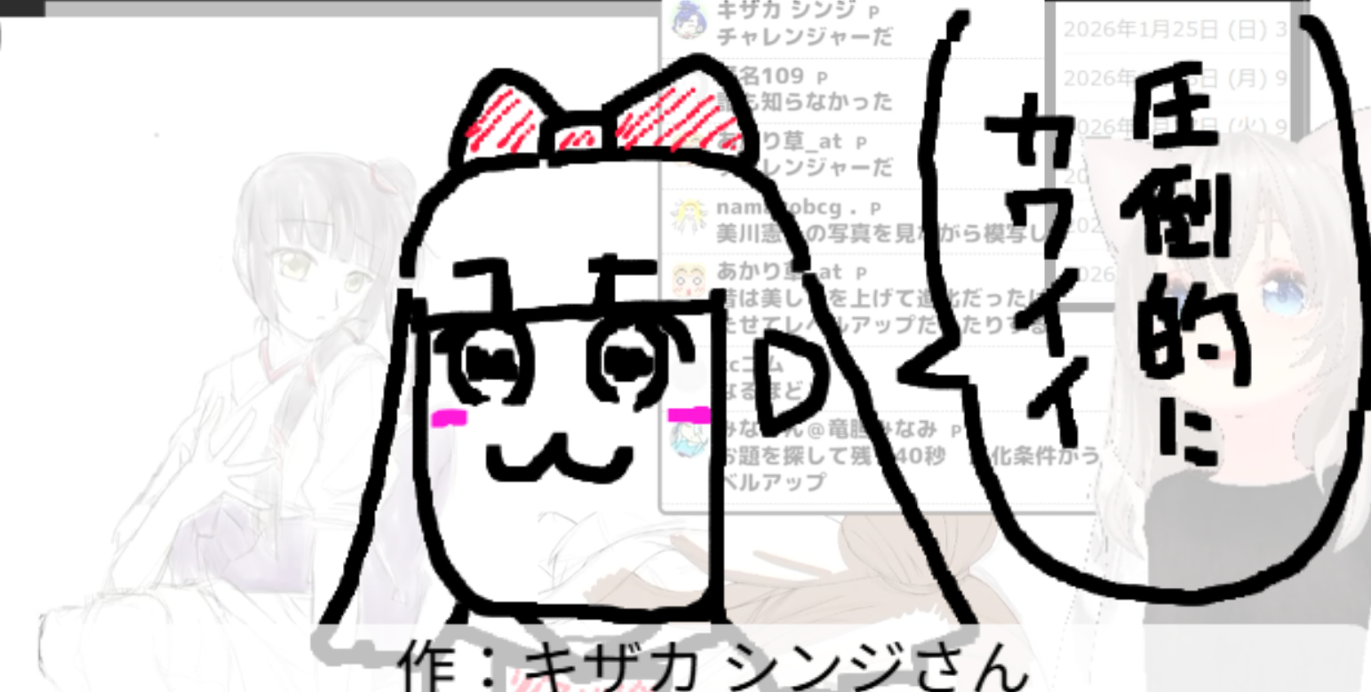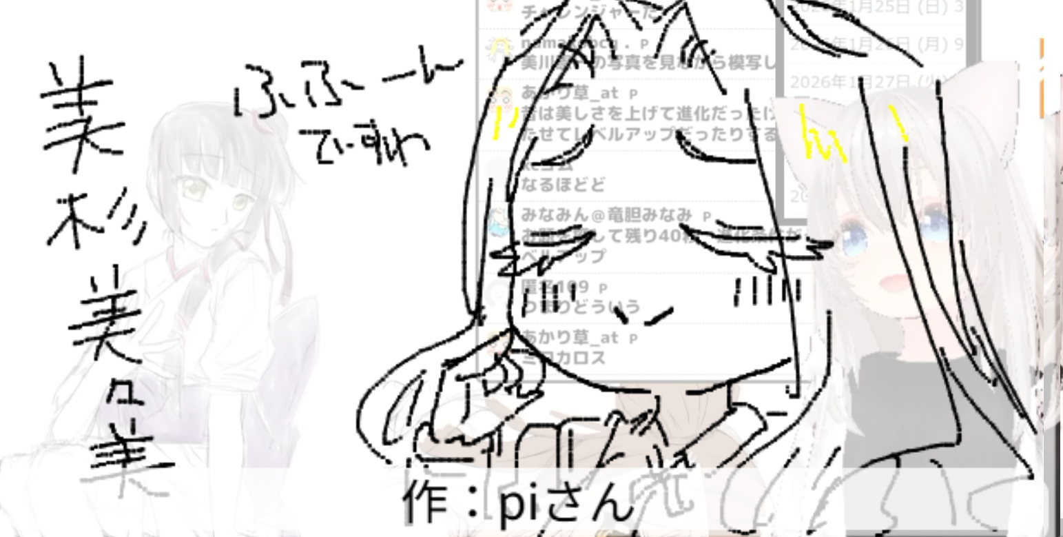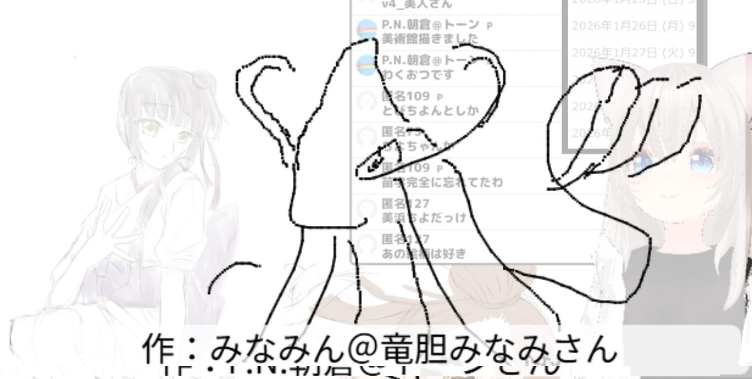 2026/01/25「美」 2026.01.25 ホーム › フォーラム › お題でお絵かき保存場所 › 2026/01/25「美」 このトピックには9件の返信、1人の参加者があり、最後に竹ちくわにより1週、 2日前に更新されました。 9件の返信スレッドを表示中 投稿者 投稿 2026年1月25日 (日) 8:31 PM #3718 返信 竹ちくわキーマスター 美容記念日らしいので 2026年1月25日 (日) 8:32 PM #3719 返信 竹ちくわキーマスター 吸血姫美夕 Attachments:260125.jpg 2026年1月25日 (日) 8:35 PM #3721 返信 竹ちくわキーマスター 「あずまんが大王」美浜ちよ 作:DUKeさん Attachments:260125_01.jpg 2026年1月25日 (日) 8:36 PM #3723 返信 竹ちくわキーマスター 美術館 作:P.N.朝倉@トーンさん Attachments:260125_02.jpg 2026年1月25日 (日) 8:38 PM #3725 返信 竹ちくわキーマスター 『ポケットモンスター』 ミロカロス 由来:古代ギリシア語:美しい うつくしさMAXでレベルアップ 作:みなみんさん Attachments:260125_03.jpg 2026年1月25日 (日) 8:39 PM #3727 返信 竹ちくわキーマスター 美川憲一 作:namakobcgさん Attachments:260125_04.jpg 2026年1月25日 (日) 8:40 PM #3729 返信 竹ちくわキーマスター 『君のことが大大大大大好きな100人の彼女』美杉美々美 作:piさん Attachments:260125_05.jpg 2026年1月25日 (日) 8:41 PM #3731 返信 竹ちくわキーマスター 『ポプテピピック』ピピ美 作:キザカシンジさん Attachments:260125_06.jpg 2026年1月25日 (日) 8:43 PM #3733 返信 竹ちくわキーマスター 『美味しんぼ』富井副部長 作:shoshinshaさん Attachments:260125_07.jpg 2026年1月25日 (日) 8:43 PM #3735 返信 竹ちくわキーマスター 美術館 作:KCゴムさん Attachments:260125_08.jpg 投稿者 投稿 9件の返信スレッドを表示中 返信先: 2026/01/25「美」 あなたの情報: お名前 (必須) メール (非公開): ウェブサイト: 以下の HTML タグと属性を使用できます。 <a href="" title="" rel="" target=""> <blockquote cite=""> <code> <pre class=""> <em> <strong> <del datetime="" cite=""> <ins datetime="" cite=""> <ul> <ol start=""> <li> <img src="" border="" alt="" height="" width=""> Upload Attachments Maximum file size allowed is 4 MB. Attachments: Add another file キャンセル 送信