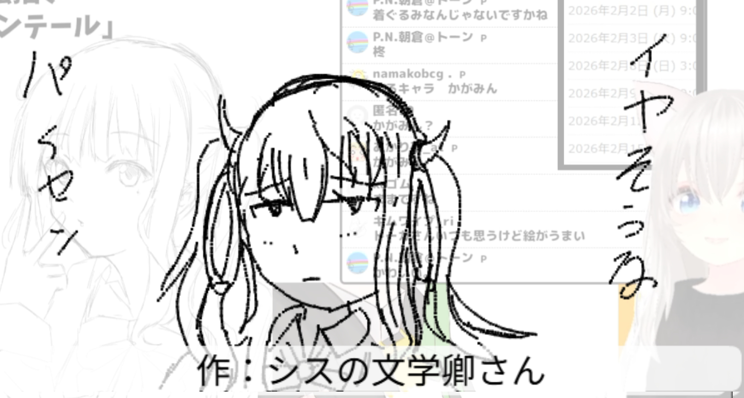 2026/02/02「ツインテール」 2026.02.02 ホーム › フォーラム › お題でお絵かき保存場所 › 2026/02/02「ツインテール」 このトピックには9件の返信、1人の参加者があり、最後に竹ちくわにより1日、 8時間前に更新されました。 9件の返信スレッドを表示中 投稿者 投稿 2026年2月2日 (月) 11:31 PM #3798 返信 竹ちくわキーマスター ツインテールの日らしいので 2026年2月2日 (月) 11:33 PM #3799 返信 竹ちくわキーマスター TOKYO6より夏色花梨 Attachments:260202.jpg 2026年2月2日 (月) 11:36 PM #3801 返信 竹ちくわキーマスター 『ウルトラマンタロウ』よりウルトラの母 作:DUKeさん Attachments:260202_01.jpg 2026年2月2日 (月) 11:37 PM #3803 返信 竹ちくわキーマスター 作:トーカさん Attachments:260202_02.jpg 2026年2月2日 (月) 11:37 PM #3805 返信 竹ちくわキーマスター かがみん 作:namakobcgさん Attachments:260202_03.jpg 2026年2月2日 (月) 11:39 PM #3807 返信 竹ちくわキーマスター TOKYO6より夏色花梨 作:シスの文学卿さん Attachments:260202_04.jpg 2026年2月2日 (月) 11:39 PM #3809 返信 竹ちくわキーマスター 作:P.N.朝倉@トーンさん Attachments:260202_05.jpg 2026年2月2日 (月) 11:41 PM #3811 返信 竹ちくわキーマスター 戦姫絶唱シンフォギア」月読 調 作:piさん Attachments:260202_06.jpg 2026年2月2日 (月) 11:42 PM #3813 返信 竹ちくわキーマスター 『帰ってきたウルトラマン』よりツインテール 作:キムワイプさん Attachments:260202_07.jpg 2026年2月2日 (月) 11:43 PM #3815 返信 竹ちくわキーマスター 作:KCゴムさん Attachments:260202_08.jpg 投稿者 投稿 9件の返信スレッドを表示中 返信先: 2026/02/02「ツインテール」 あなたの情報: お名前 (必須) メール (非公開): ウェブサイト: 以下の HTML タグと属性を使用できます。 <a href="" title="" rel="" target=""> <blockquote cite=""> <code> <pre class=""> <em> <strong> <del datetime="" cite=""> <ins datetime="" cite=""> <ul> <ol start=""> <li> <img src="" border="" alt="" height="" width=""> Upload Attachments Maximum file size allowed is 4 MB. Attachments: Add another file キャンセル 送信