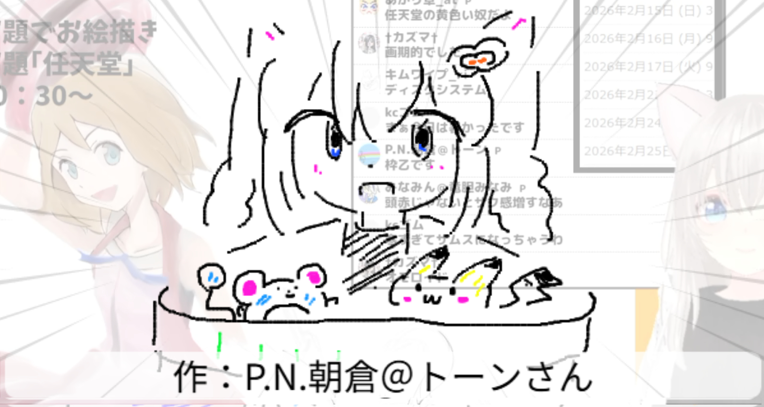 2026/02/15「任天堂」 2026.02.15 ホーム › フォーラム › お題でお絵かき保存場所 › 2026/02/15「任天堂」 このトピックには8件の返信、1人の参加者があり、最後に竹ちくわにより1週、 5日前に更新されました。 8件の返信スレッドを表示中 投稿者 投稿 2026年2月15日 (日) 8:30 PM #3885 返信 竹ちくわキーマスター 任天堂ダイレクトの話題を出したから 2026年2月15日 (日) 8:31 PM #3886 返信 竹ちくわキーマスター ポケットモンスターよりセレナ Attachments:260215.jpg 2026年2月15日 (日) 8:36 PM #3889 返信 竹ちくわキーマスター メトロイド 作:みなみんさん Attachments:260215_01.jpg 2026年2月15日 (日) 8:37 PM #3891 返信 竹ちくわキーマスター ファミコン周辺機器ディスクシステムのマスコットキャラクター 作:DUKeさん Attachments:260215_02.jpg 2026年2月15日 (日) 8:37 PM #3893 返信 竹ちくわキーマスター ポケットモンスター マリルとピカチュウ 作:P.N.朝倉@トーンさん Attachments:260215_03.jpg 2026年2月15日 (日) 8:38 PM #3895 返信 竹ちくわキーマスター ゼルダの伝説よりリンク 作:piさん Attachments:260215_04.jpg 2026年2月15日 (日) 8:38 PM #3897 返信 竹ちくわキーマスター ファミコン 作:うめきちさん Attachments:260215_05.jpg 2026年2月15日 (日) 8:39 PM #3899 返信 竹ちくわキーマスター ヨッシー 作尾:キムワイプさん Attachments:260215_06.jpg 2026年2月15日 (日) 8:40 PM #3901 返信 竹ちくわキーマスター ファイアマリオ 作:KCゴムさん Attachments:260215_07.jpg 投稿者 投稿 8件の返信スレッドを表示中 返信先: 2026/02/15「任天堂」 あなたの情報: お名前 (必須) メール (非公開): ウェブサイト: 以下の HTML タグと属性を使用できます。 <a href="" title="" rel="" target=""> <blockquote cite=""> <code> <pre class=""> <em> <strong> <del datetime="" cite=""> <ins datetime="" cite=""> <ul> <ol start=""> <li> <img src="" border="" alt="" height="" width=""> Upload Attachments Maximum file size allowed is 4 MB. Attachments: Add another file キャンセル 送信