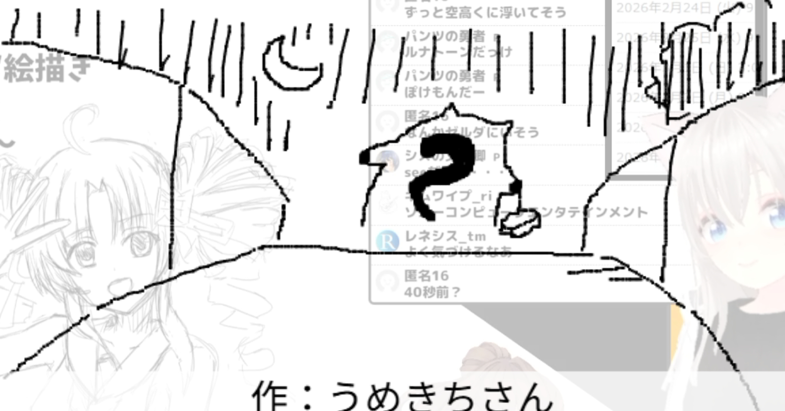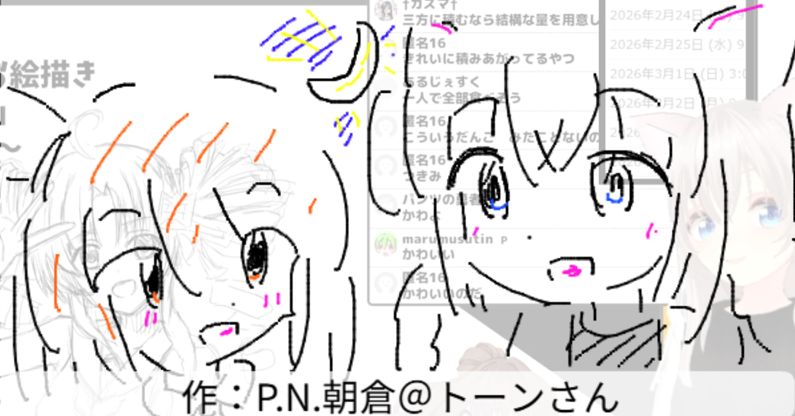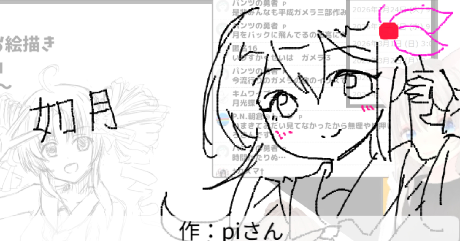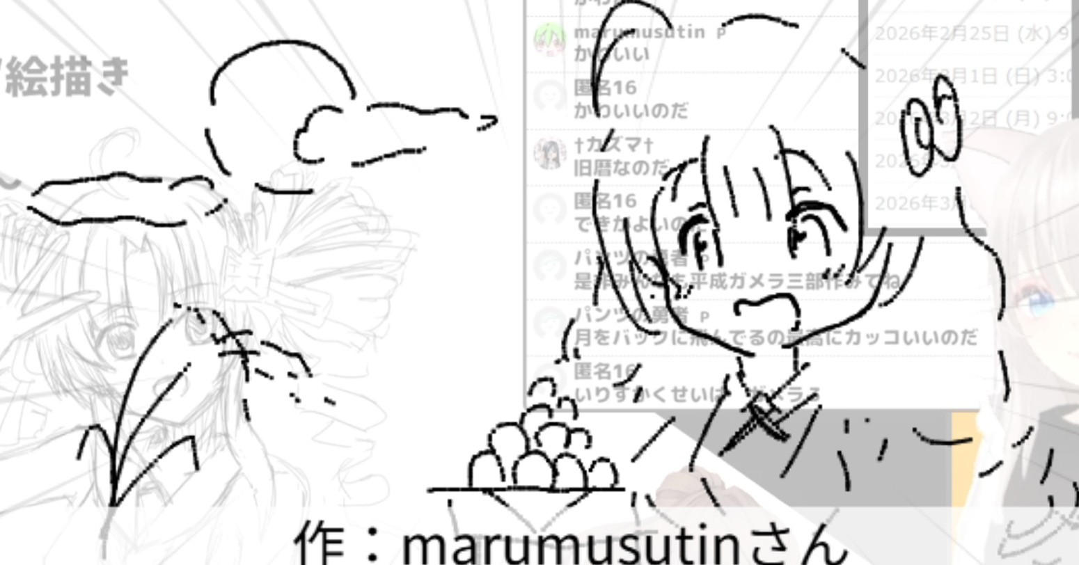 2026/02/24「月」 2026.02.24 ホーム › フォーラム › お題でお絵かき保存場所 › 2026/02/24「月」 このトピックには8件の返信、1人の参加者があり、最後に竹ちくわにより3日、 1時間前に更新されました。 8件の返信スレッドを表示中 投稿者 投稿 2026年2月24日 (火) 11:30 PM #3959 返信 竹ちくわキーマスター 月光仮面登場の日らしいので 2026年2月24日 (火) 11:31 PM #3960 返信 竹ちくわキーマスター 如月ついなちゃん Attachments:260224.jpg 2026年2月24日 (火) 11:37 PM #3962 返信 竹ちくわキーマスター 『ガメラ3 邪神〈イリス〉覚醒』より邪神イリス 作:パンツの勇者さん Attachments:260224_01.jpg 2026年2月24日 (火) 11:38 PM #3964 返信 竹ちくわキーマスター 艦これより如月 作:piさん Attachments:260224_02.jpg 2026年2月24日 (火) 11:38 PM #3966 返信 竹ちくわキーマスター 月見だんご 作:marumusutinさん Attachments:260224_03.jpg 2026年2月24日 (火) 11:39 PM #3968 返信 竹ちくわキーマスター お月見 作:P.N.朝倉@トーンさん Attachments:260224_04.jpg 2026年2月24日 (火) 11:40 PM #3970 返信 竹ちくわキーマスター なつきかりん 作:シスの文学卿さん Attachments:260224_05.jpg 2026年2月24日 (火) 11:42 PM #3972 返信 竹ちくわキーマスター 【ポケットモンスター ルビー・サファイア】よりルナトーン 作:キムワイプさん Attachments:260224_06.jpg 2026年2月24日 (火) 11:42 PM #3974 返信 竹ちくわキーマスター 月夜の夜道 作:うめきちさん Attachments:260224_07.jpg 投稿者 投稿 8件の返信スレッドを表示中 返信先: 2026/02/24「月」 あなたの情報: お名前 (必須) メール (非公開): ウェブサイト: 以下の HTML タグと属性を使用できます。 <a href="" title="" rel="" target=""> <blockquote cite=""> <code> <pre class=""> <em> <strong> <del datetime="" cite=""> <ins datetime="" cite=""> <ul> <ol start=""> <li> <img src="" border="" alt="" height="" width=""> Upload Attachments Maximum file size allowed is 4 MB. Attachments: Add another file キャンセル 送信
